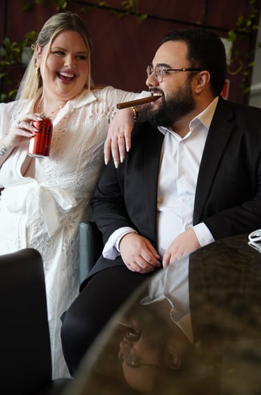 Nosso primeiro encontro merece um capítulo à parte. O Vini escolheu um restaurante dizendo que amava comer steak tartar… sem nem saber exatamente o que era. O resultado? Um momento extremamente engraçado, um pouco constrangedor e totalmente inesquecível. Ali, entre risadas e surpresa, a gente começou, sem perceber, algo que nunca mais parou.